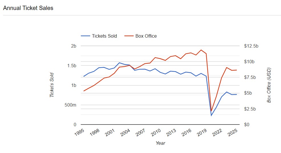 The Numbers – Domestic Movie Theatrical Market Summary 1995 to 2025